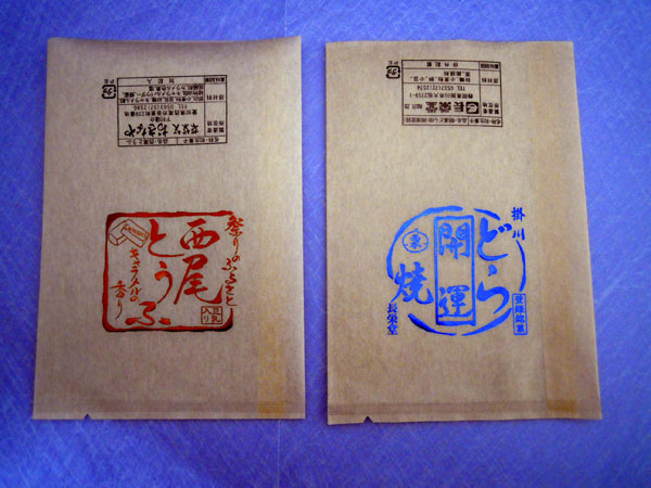 当社では、写真にもありますように和菓子パッケージや洋菓子パッケージの製造・販売をするとともに、お菓子の開発にも取り組んでおります。